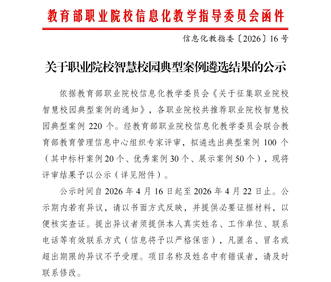 我校案例入选全国职业院校智慧校园标杆案例